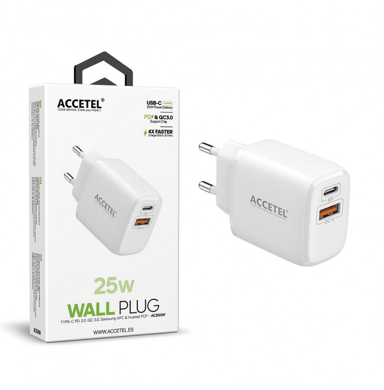 AC550W Cargador de Pared de Carga Rápida USB-A + USB-C