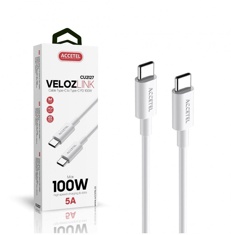 CU2127 Cable Carga Rápida 100W Type-C a Type-C Max.20V 5A (1M) Blanco Cable de Carga Rápida y Transferencia de Datos