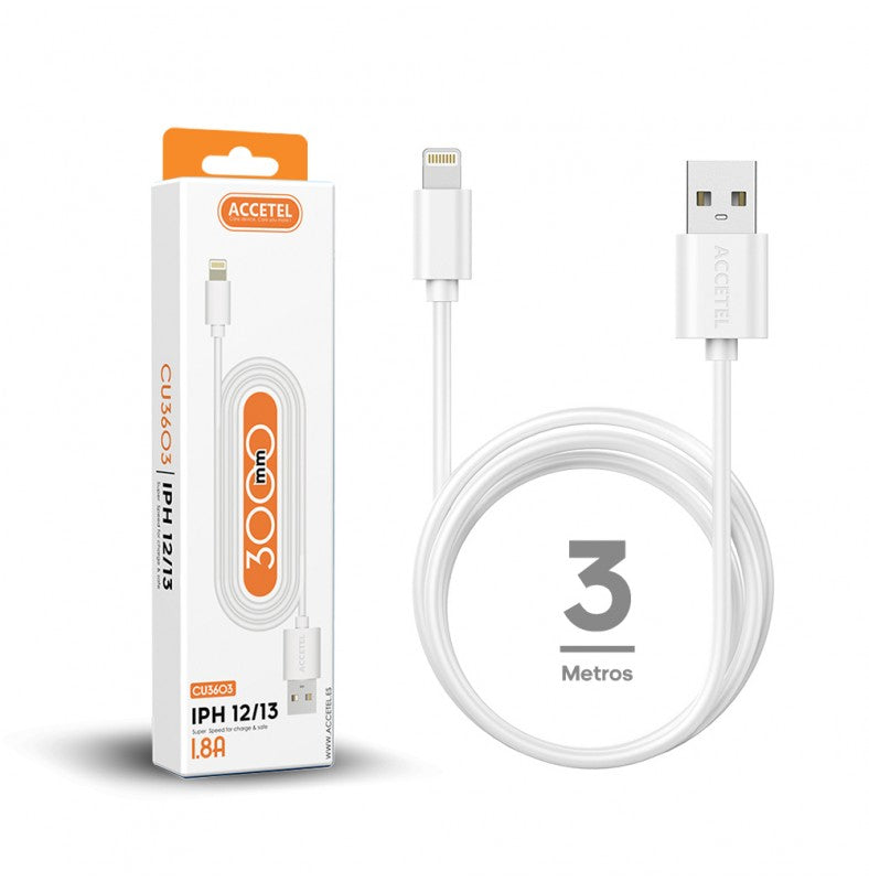 CU3603 Cable Datos 1.8A - Lightning Blanco (3M) Cable de Carga y Transferencia de Datos
